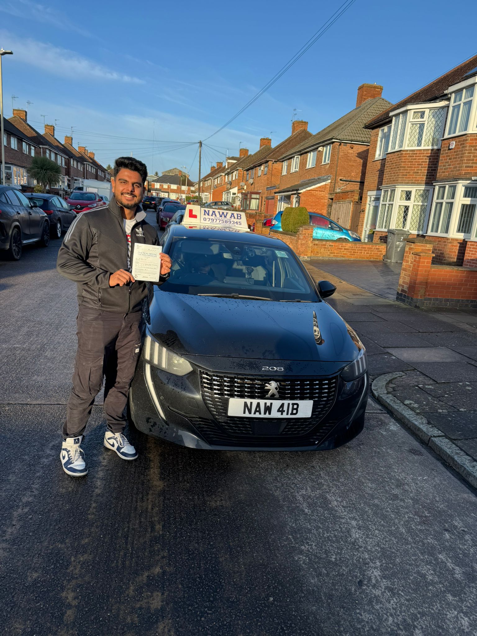 ZERO FAULTS”. I am happy to share that I successfully cleared my driving test on my first attempt. My training experience with Nawab Sir was extremely positive. He is highly professional, patient, and ensures a comfortable learning environment while driving. His clear instructions and composed teaching style helped me develop confidence and a proper understanding of traffic rules. What I appreciated most was his strong focus on road safety and disciplined driving practices, not just passing the test. With his proper guidance and support, I achieved success on my first try. I would confidently recommend Nawab Sir to anyone seeking a knowledgeable and dependable driving instructor.