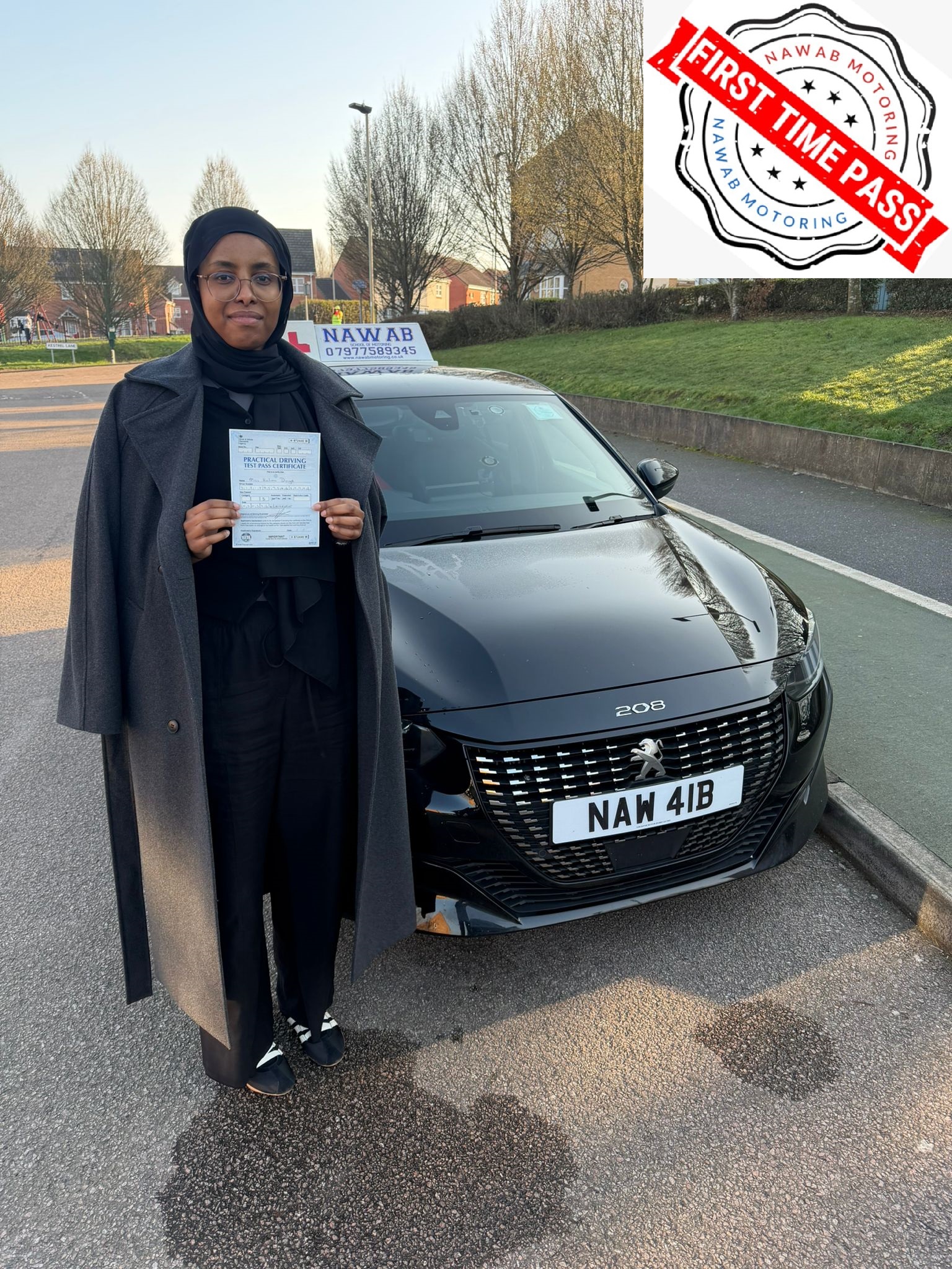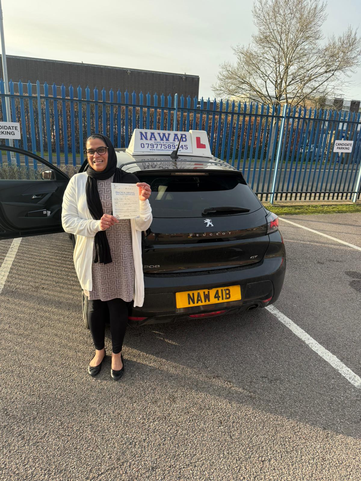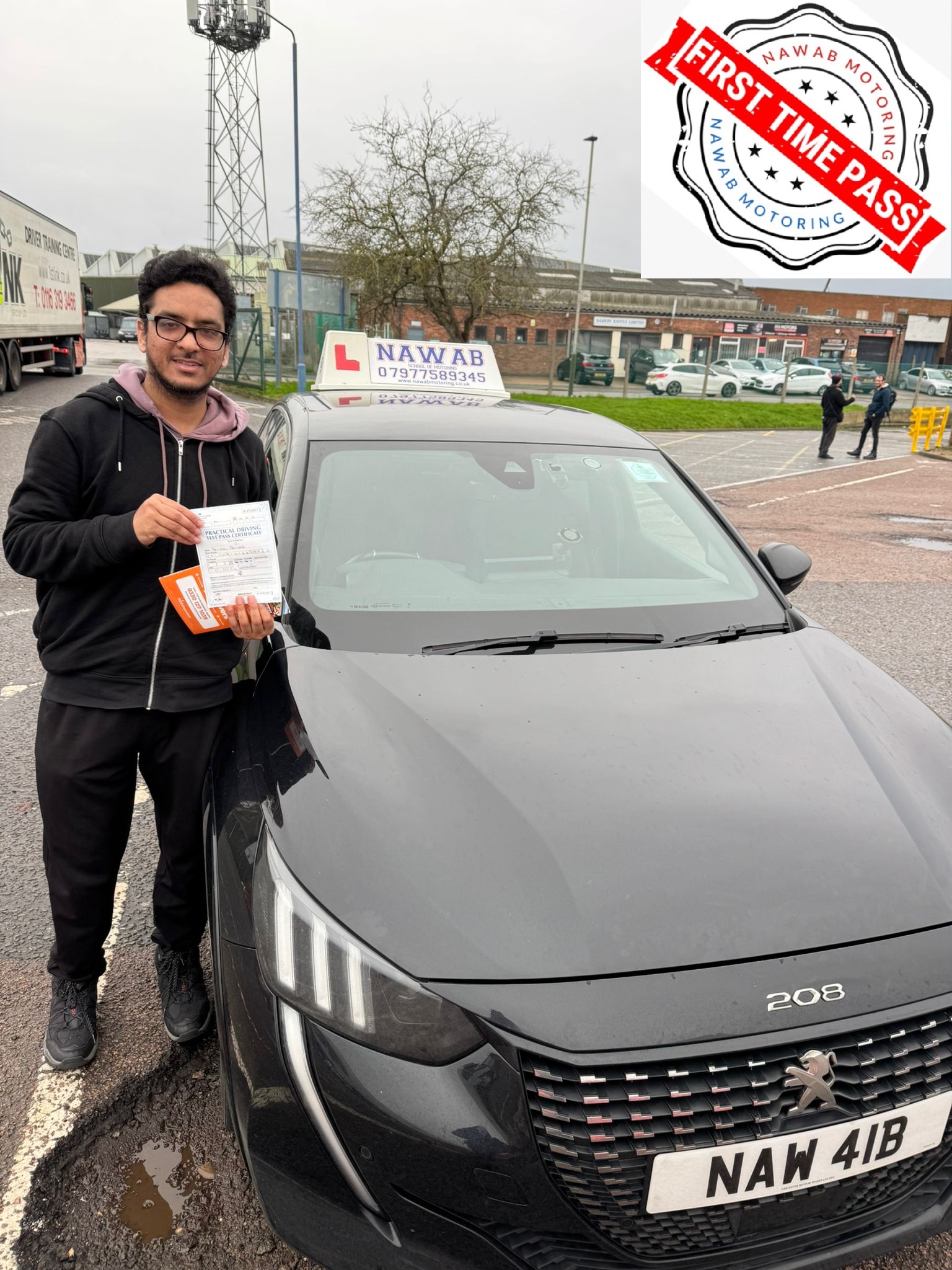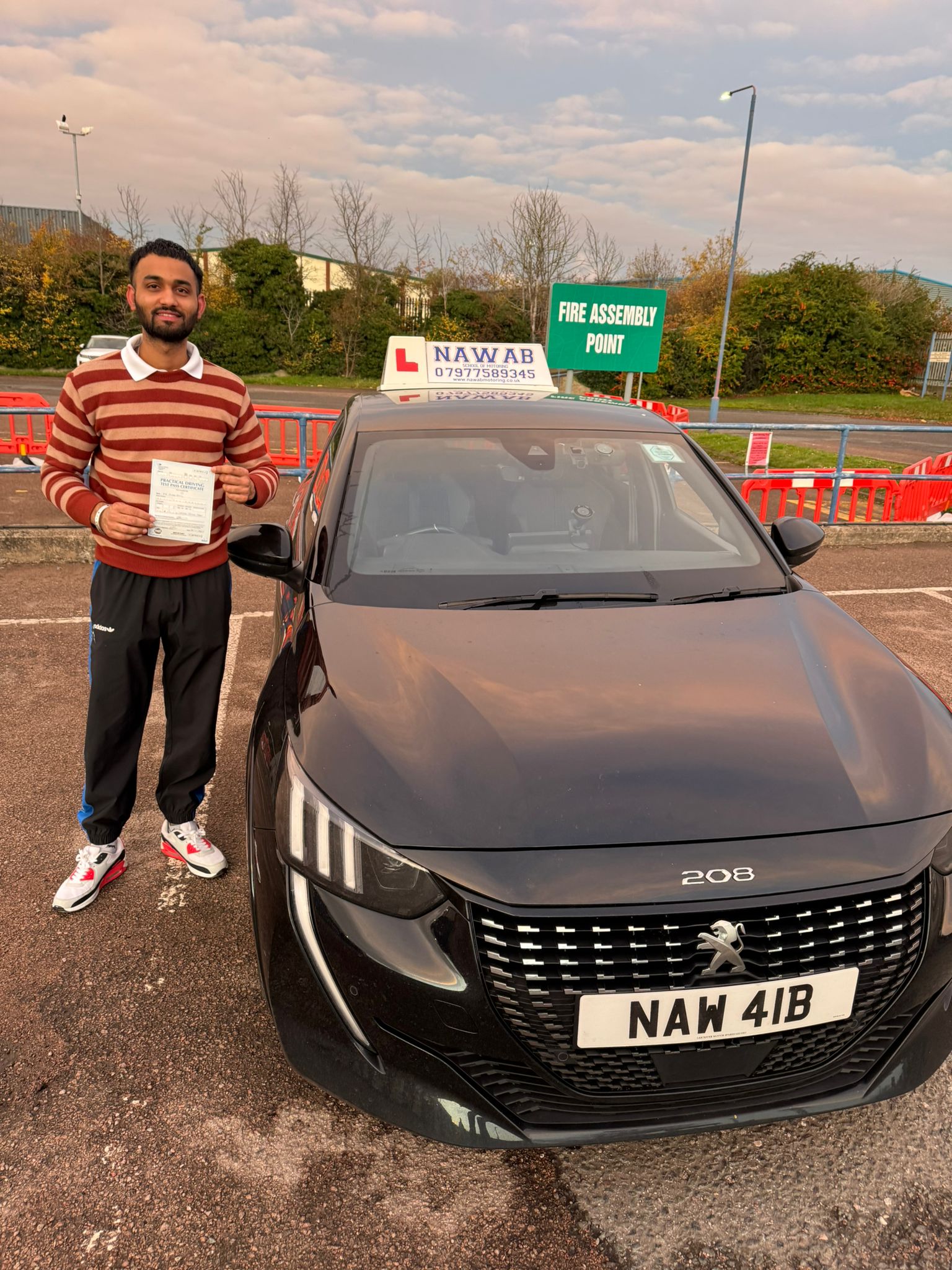 PASS AT FIRST ATTEMPT. Alhamdulillah, I’m so grateful to have learned car with Irfan Bhai at Nawab Driving School. He is incredibly patient, calm, and professional and he made every lesson feel comfortable and confidence-building. His clear explanations and constant encouragement helped me overcome my nerves and they focused on test preparation from day One. Thats why I felt fully confident on the test day. Thanks to him for guidance, I passed my driving test at first attempt and now feel confident to drive on my own. I highly recommend to anyone who looking for a supportive and knowledgeable driving instructor so please without thinking twice reach out to Nawab driving school. At the end he is amazing man like NAWAB.